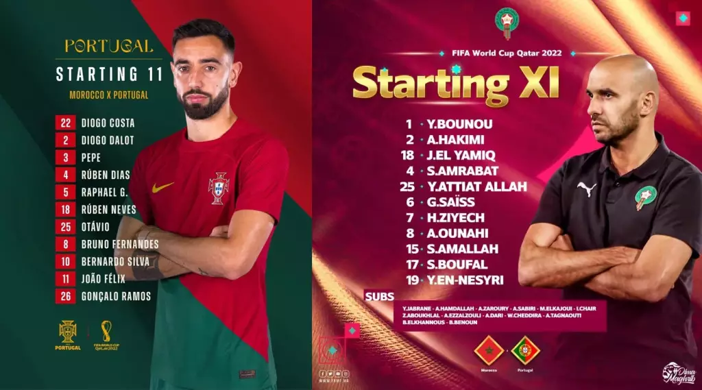 C朗拿度在世界盃十六強對瑞士退居後備,葡萄牙行軍速度即大幅提升,攻勢亦較之前流暢,並且大勝6:1輕鬆晉級。所以,12月10日晚八強於阿爾圖馬馬球場對摩洛哥,葡萄牙教練費蘭度山度士繼續收起C朗,由上仗連中三元的干卡路拉莫斯繼續取代C朗正選上陣。