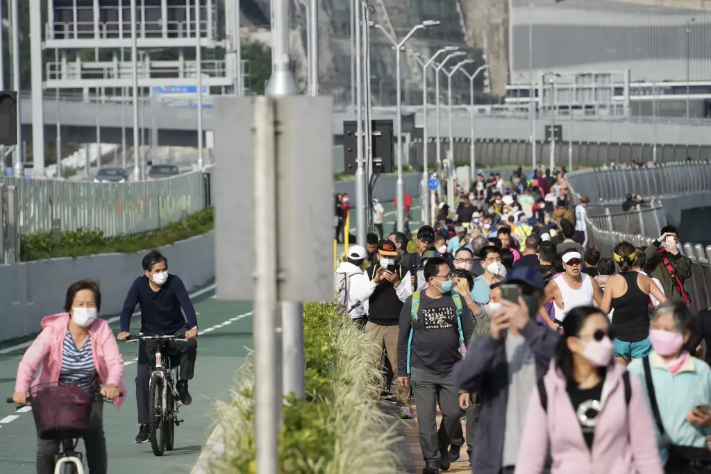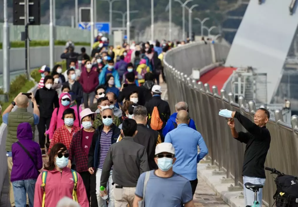 跨灣大橋人頭湧湧。