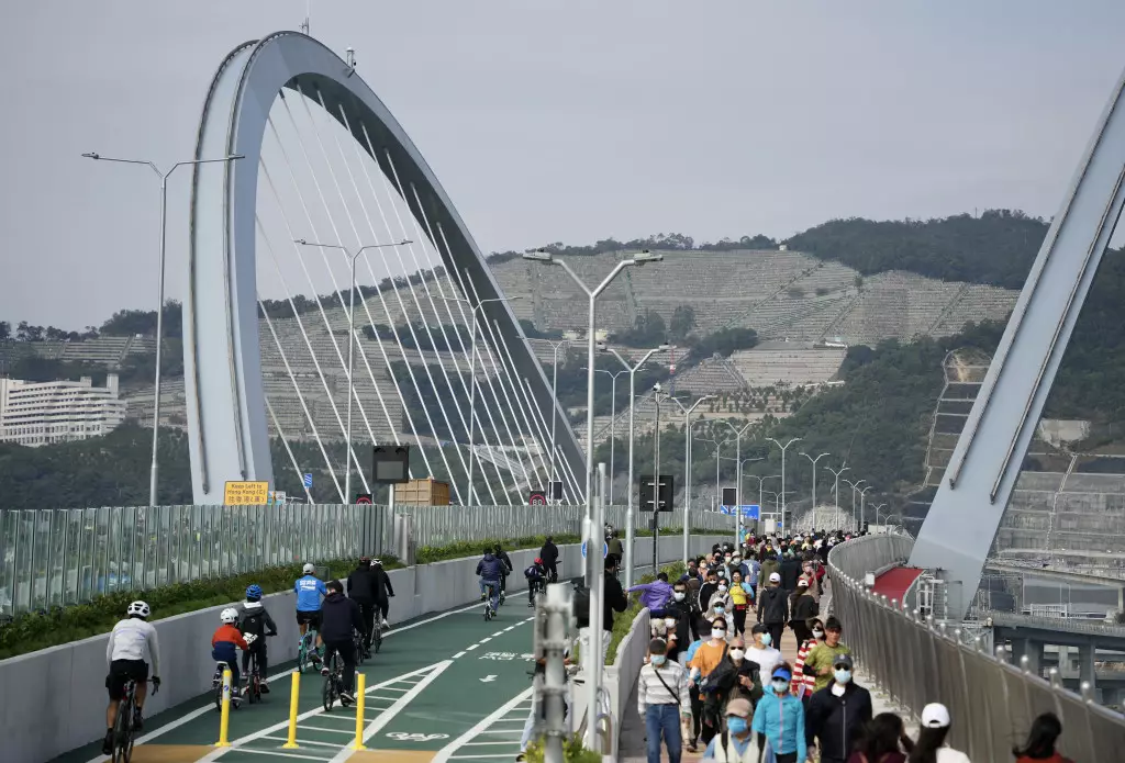 跨灣大橋遊人不絕。