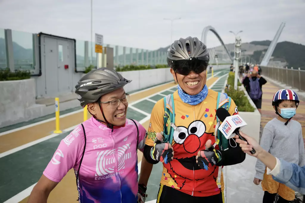 特地從外區過來踩單車的陳先生和李先生,直指跨灣大橋非常吸引,因為香港沒有跨海的單車徑,周圍風景十分怡人。另外,同樣由外區踏單車到來的劉先生稱,他於11日早上8時就來到跨灣大橋,感到非常興奮,以前只是去普通的單車徑,但跨灣大橋提供另一好選擇,「日後會繼續嚟(大橋)踩單車」。
