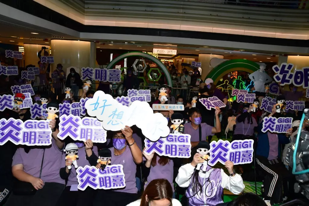 炎明熹(Gigi)到黃埔出席由連鎖快餐店主辦的「炎明熹好想約你~做善事」慈善活動,吸引數百粉絲拿着應援物到場支持。