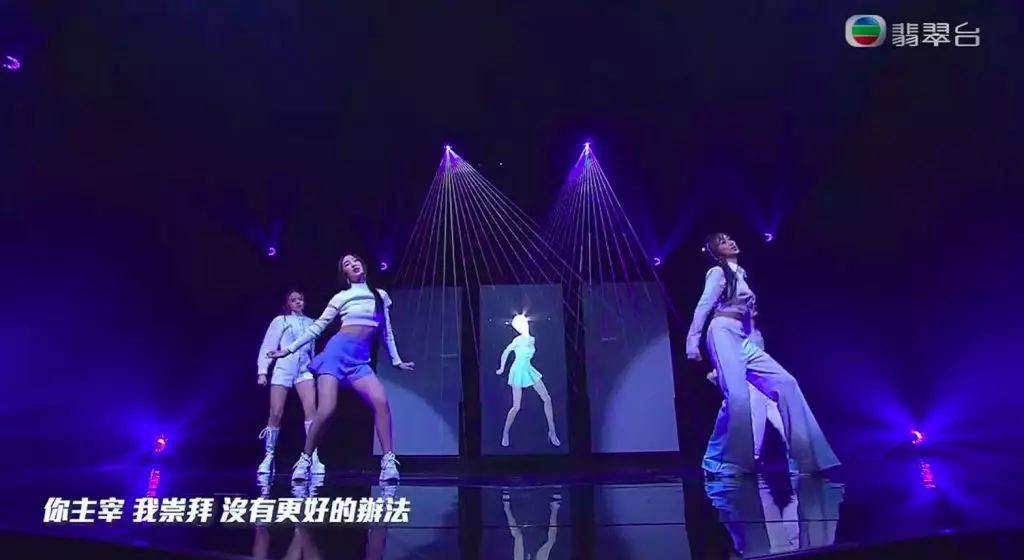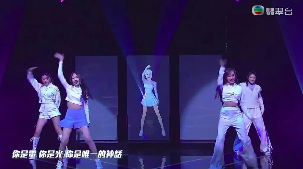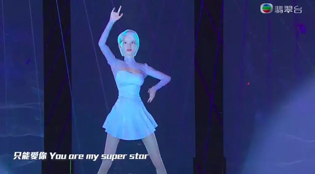 不過表演被網民嘲為「車禍現場」,原因在4位小花身後的虛擬代言人「樂伊JOY-E」身上。其實同樣的科技在日本已流行逾10年,初音未來就是為人熟悉的虛擬偶像,但比較之下「樂伊JOY-E」就不太爭氣了!網民都指她塑膠感太重,外觀及動作都做得不夠仔細,直言:「吹氣公仔咁就唔好拎出嚟啦。」不過,都有網民理性討論,指可能是熒幕解像度太低,所以出來效果才不如理想。