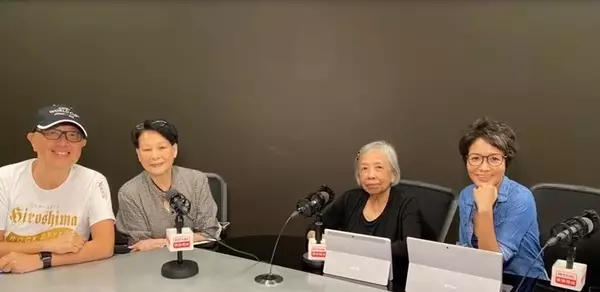譚少英(左二)接受楊紹鴻的節目訪問。