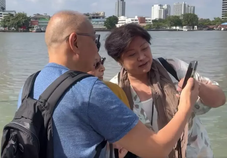 譚少英(左二)與黃淑儀一齊到泰國探楊紹鴻(右一)。