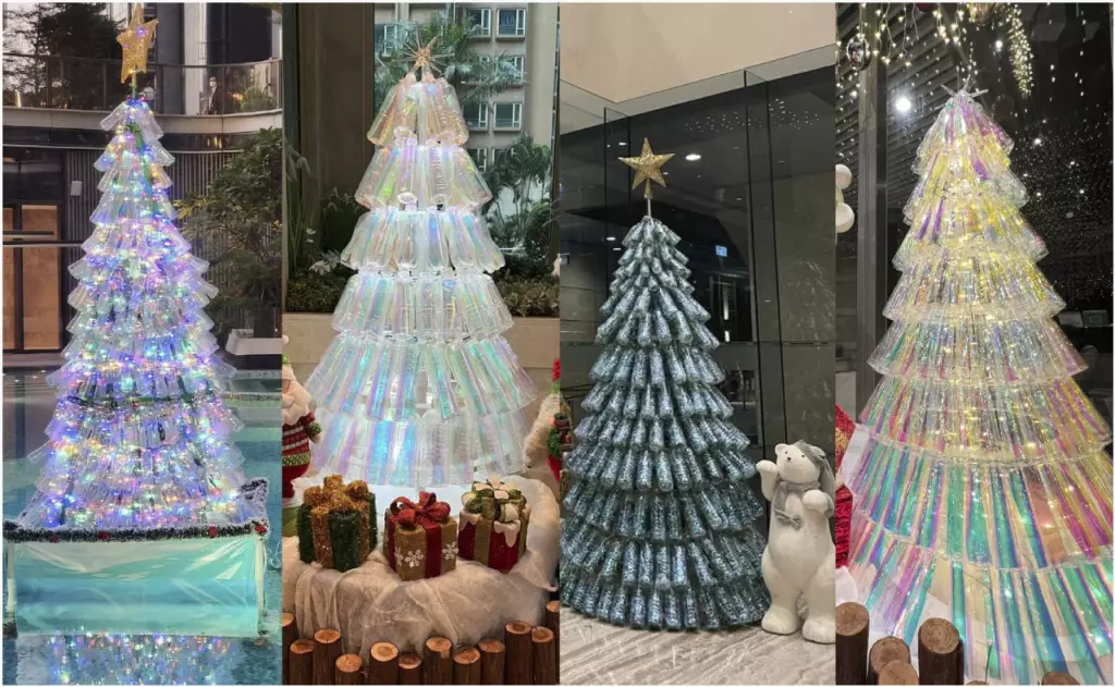 七彩繽紛的膠樽聖誕樹,洋溢別具一格的佳節氣氛。