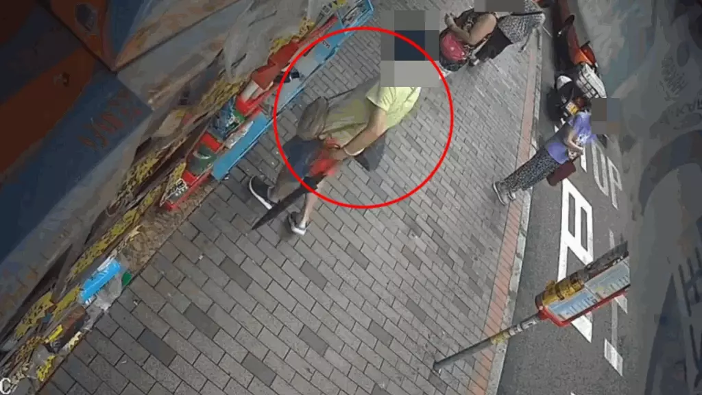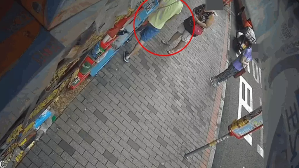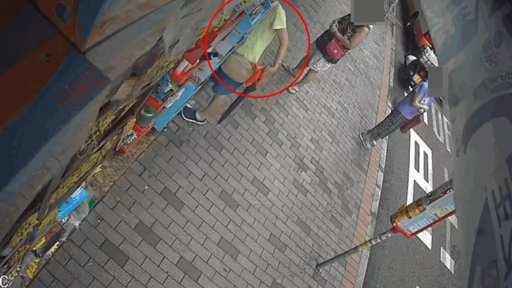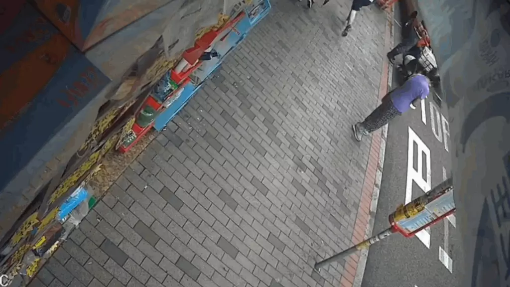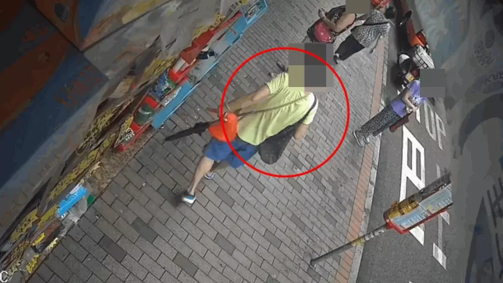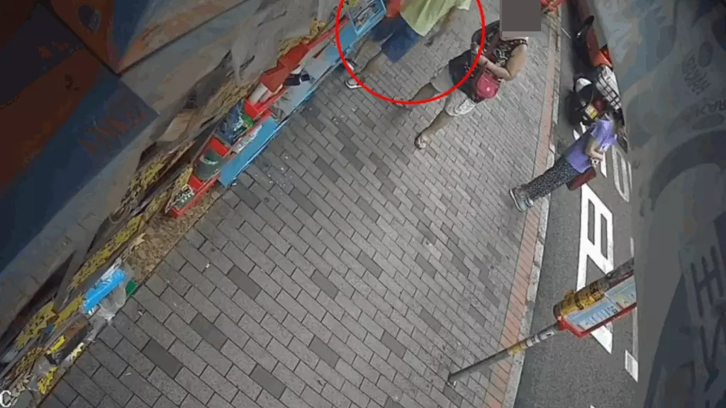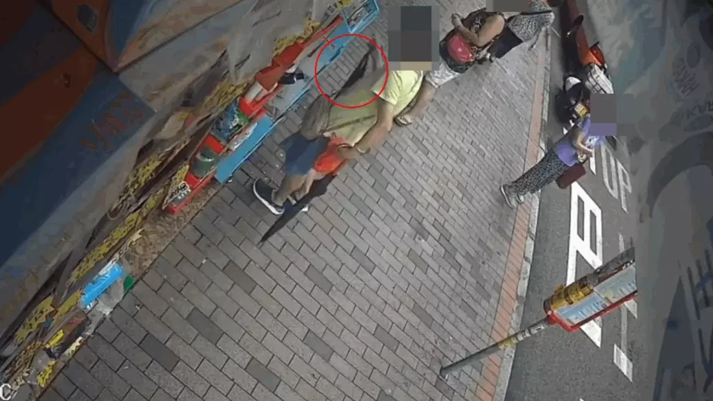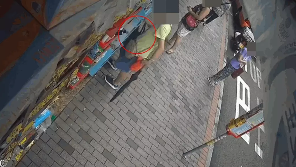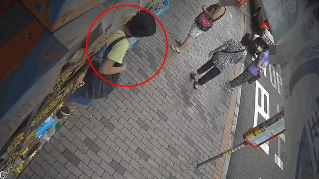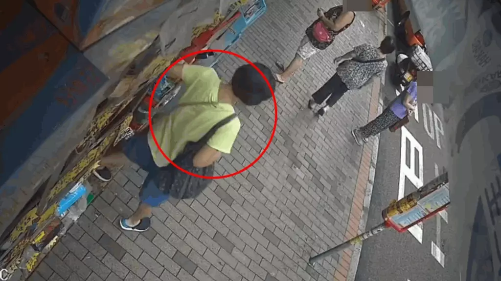 發布影片的人士表示,這名中年婦人屬慣犯,有古惑招數,她將斜孭袋放在藥房隔壁店鋪門前,自己則躲在遠處靜觀其變。