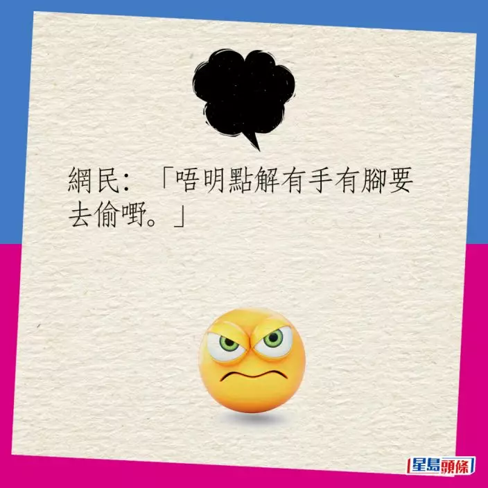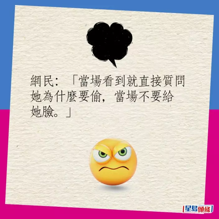 網民對於這種古惑招數議論紛紛,大多網民批評小偷「魔高一丈」:「阿婆好聰明。」「呢個好專業,應該偷咗唔少嘢。」「一樣米養百樣人呀!」「唔明點解有手有腳要去偷嘢。」不少網民仍建議店主日後遇到相同情況,仍應該報警處理,不要讓不法之徒心存僥倖。