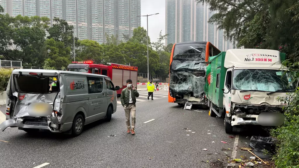 【10:30】意外涉及一部龍運巴士、一部食環外判清潔公司的5.5噸貨車以及一部客貨車。警方表示,暫時有5名傷者送北大嶼山醫院,另2人送瑪嘉烈醫院治理。