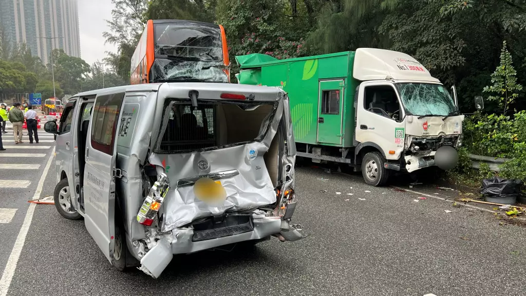 龍運巴士與貨車及客貨車相撞,至少一人當場死亡。
