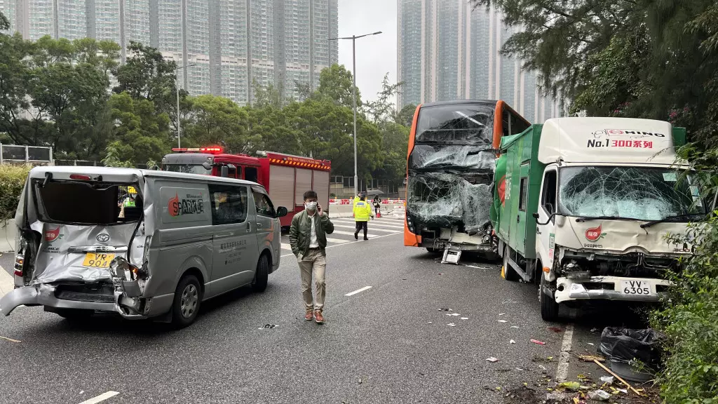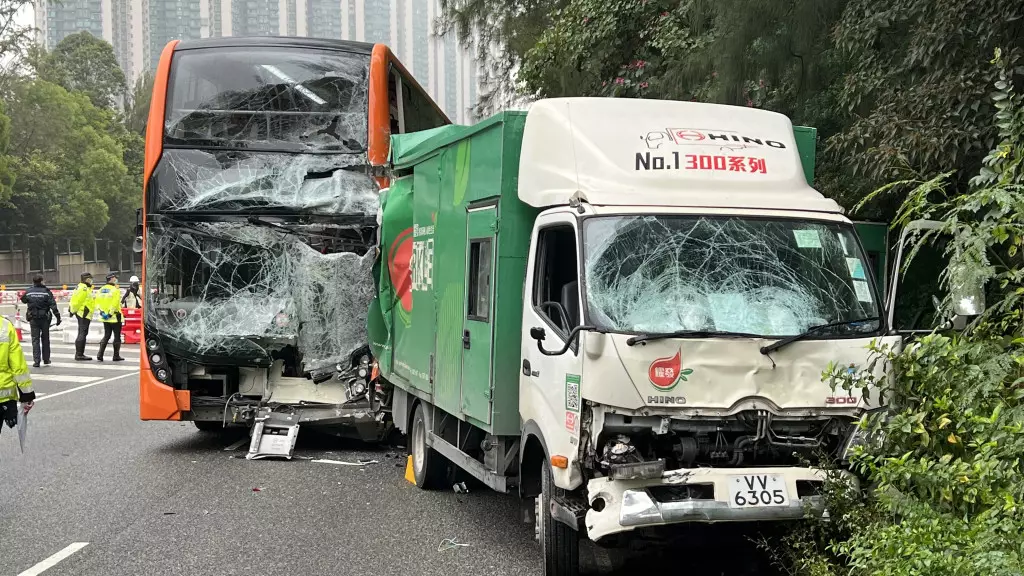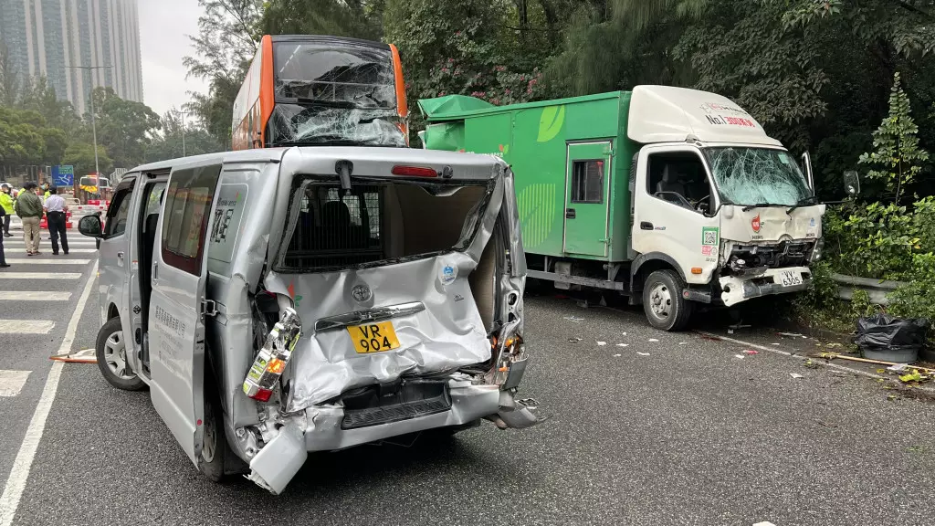 事發於16日晨9時18分,東涌北大嶼山醫院迴旋處,一部龍運機場巴士與5.5噸貨車相撞,再撞輕型貨車,輕貨車尾被撞至變形,貨車司機及工人被困輕貨車底,事件共釀成一死至少11傷。