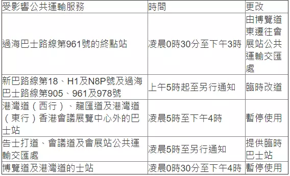 另外,公共交通營辦商會張貼通告,通知乘客有關的臨時安排。使用公共交通服務的乘客亦需留意有關路線改道、暫停使用及遷移車站的安排。運輸署及警方會密切留意交通情況,並在有需要時採取適當措施。
