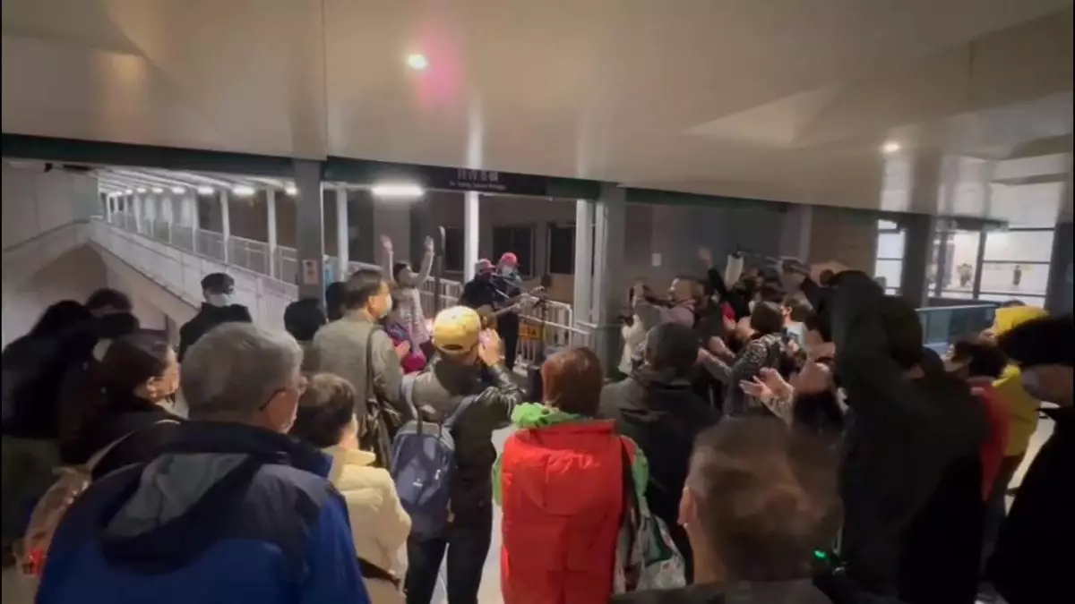 圍觀粉絲紛紛以手機燈和應,氣氛勁好。