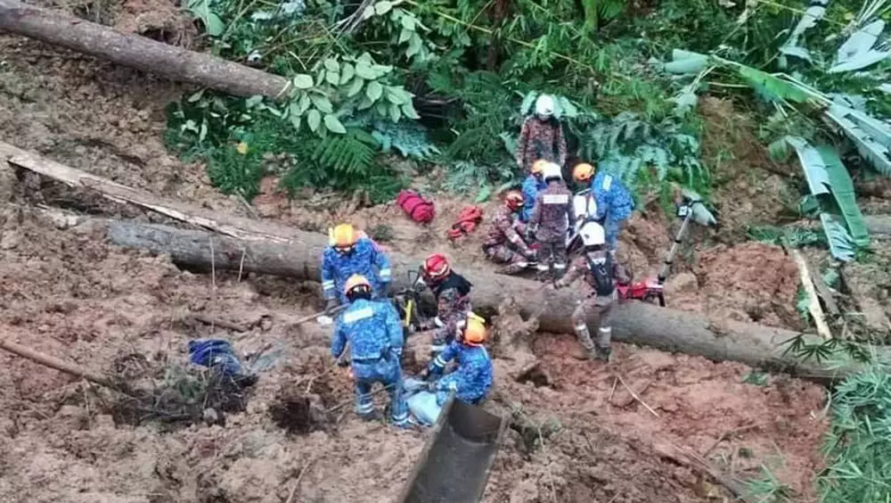 馬來西亞雲頂山泥傾瀉現場實況。