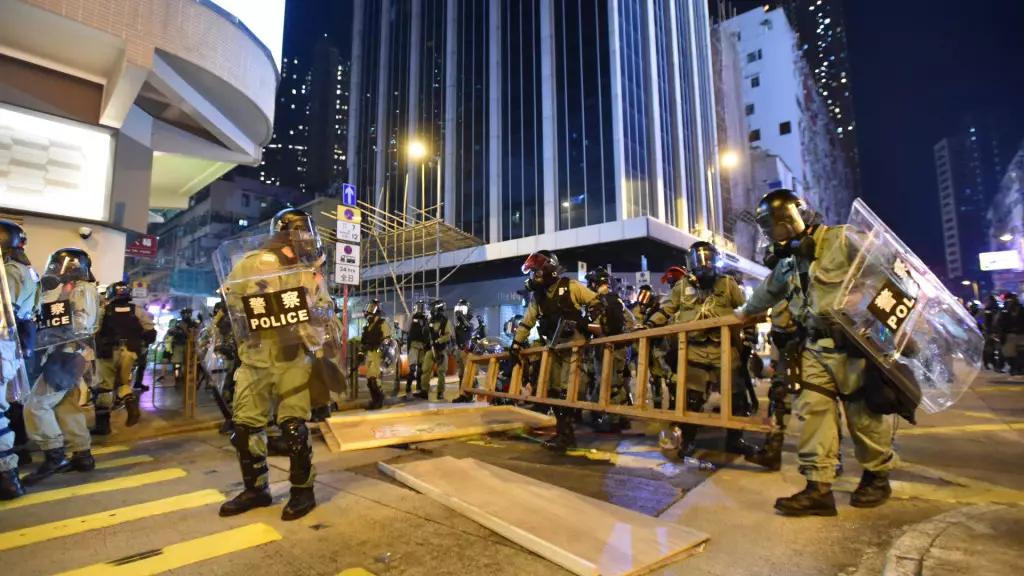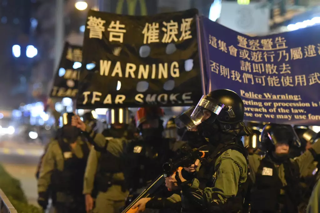 當晚大批示威者集結在荃灣一帶防暴警到場戒備。資料圖片