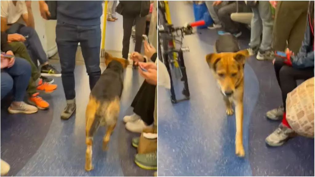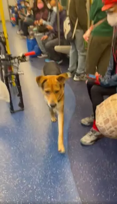 屯馬綫列車車廂內日前發現不速之客,一隻沒有佩戴頸圈的狗狗在車廂內遊走,大好人樓主出手襄助,在網上發文指「屯馬綫列車內發現......暫時在錦上路站hold住先,再慢慢找主人」。