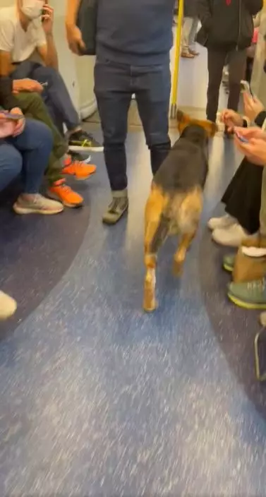 從附上的相片可見,「豆豆」由港鐵職員短暫照顧;而透過短片,則見到狗狗在車尾或車頭位置向車廂中央走去,期間遇上乘客伸手討摸時即乖巧坐下。「豆豆」行過期間乘客大都投以好奇目光,看似沒有受到驚嚇。