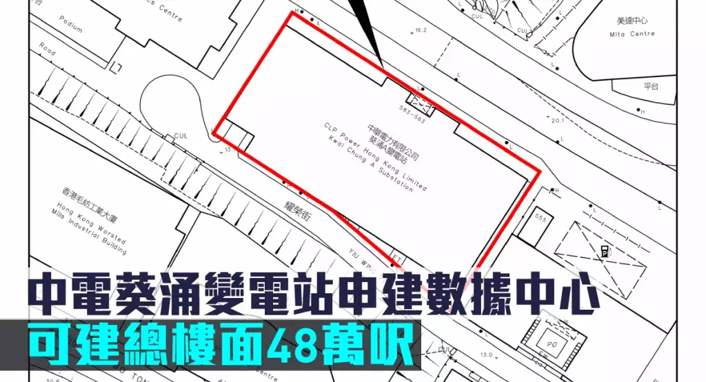 中電葵涌A變電站,向城規會申請重建為1幢數據中心,涉及可建總樓面約48.4萬方呎。