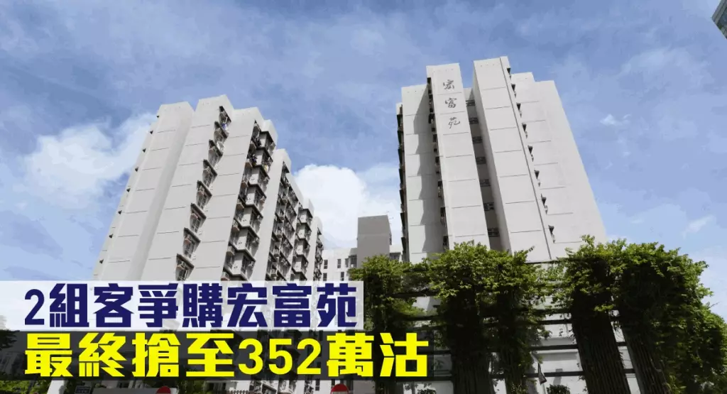 美聯分行高級分區營業經理徐君寶表示,元朗宏富苑低層7室,面積435方呎,現為2房戶,單位開價348萬放售,新近吸引2組「白居二」買家洽購,最終搶貴4萬,以352萬(居二市場價)獲區內客承接,呎價約8092元。
