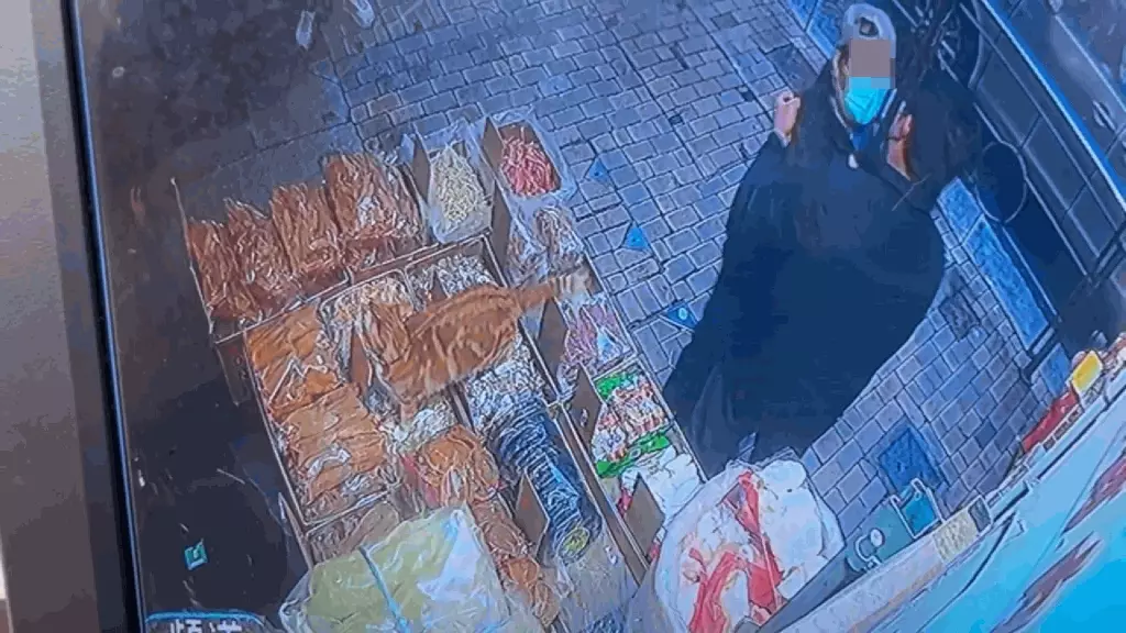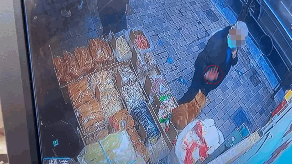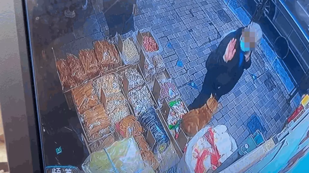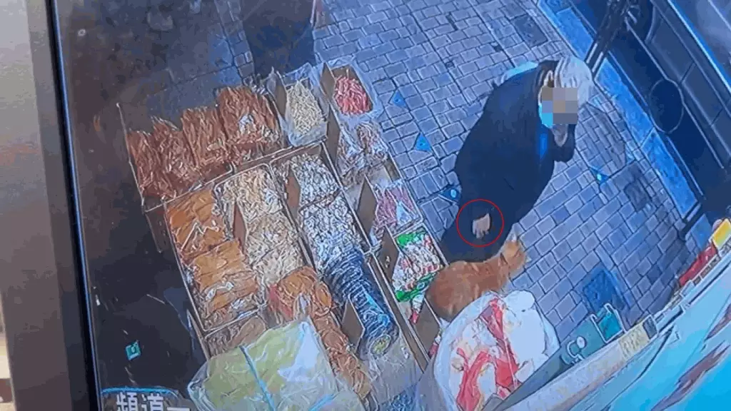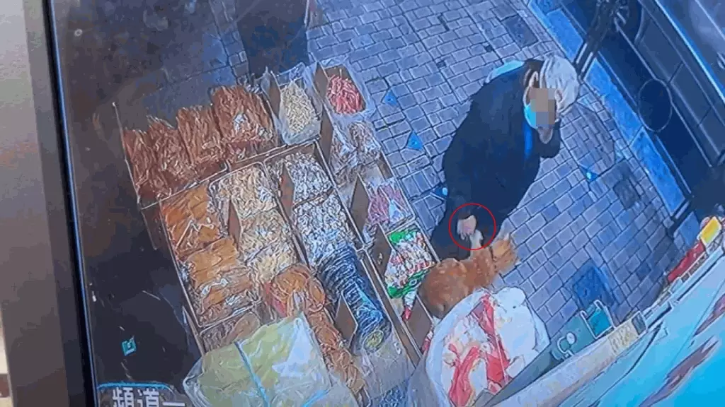 站在一邊的店員突衝前,走向大叔,並怒扯大叔心口狂揈,狀似欲毆,影片看到大叔被突如其來的行為嚇倒,似不斷向憤怒店員解釋,影片於此時結束,未知衝突的最後結局。