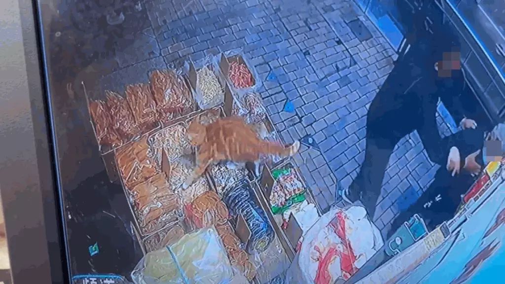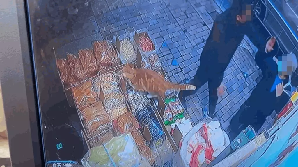 影片全長約13秒,影片未有標示發生時間,至於地點,有網民認出為上環一間海味店。影片開頭見到一位四眼大叔在海味店前撫弄店前貓咪,大叔先輕掃貓咪背部。