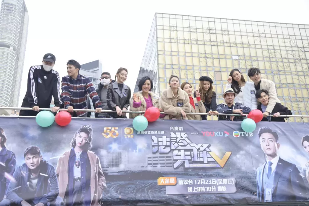 蔡思貝、蔡潔、謝東閔及白彪等一眾17日到尖沙咀為台慶劇《法證先鋒V》進行花車巡遊宣傳,不過黃宗澤因身體不適缺席。眾人乘坐的花車由尖沙咀駛到佐敦,沿途亦有市民向他們揮手,一眾演員除了在巴士上揮手外,亦有落車大派劇中的小丑咖啡,其間更不忘順勢為該劇拉票。