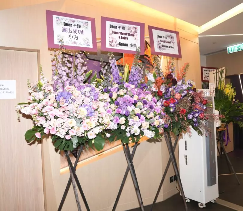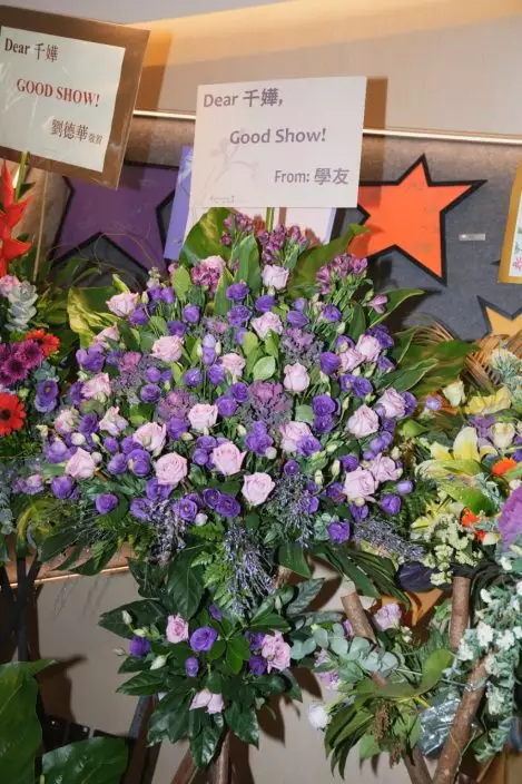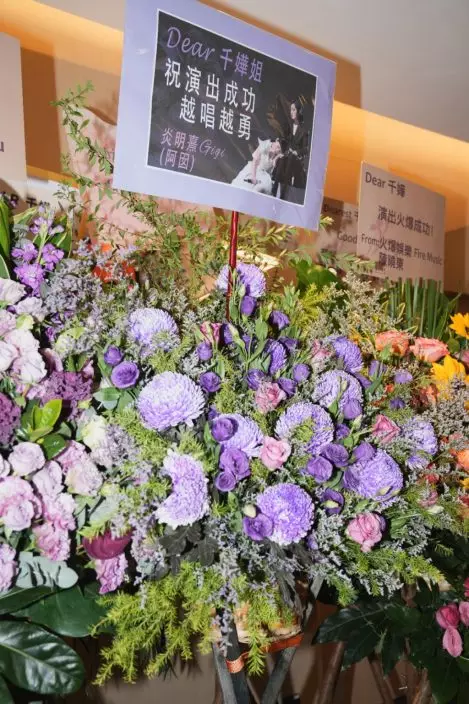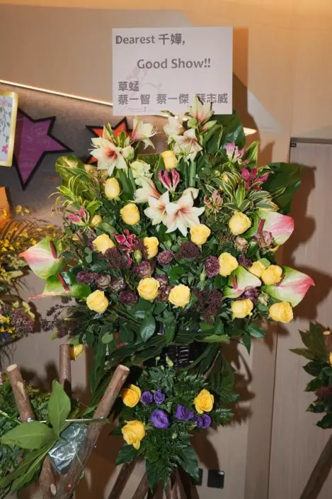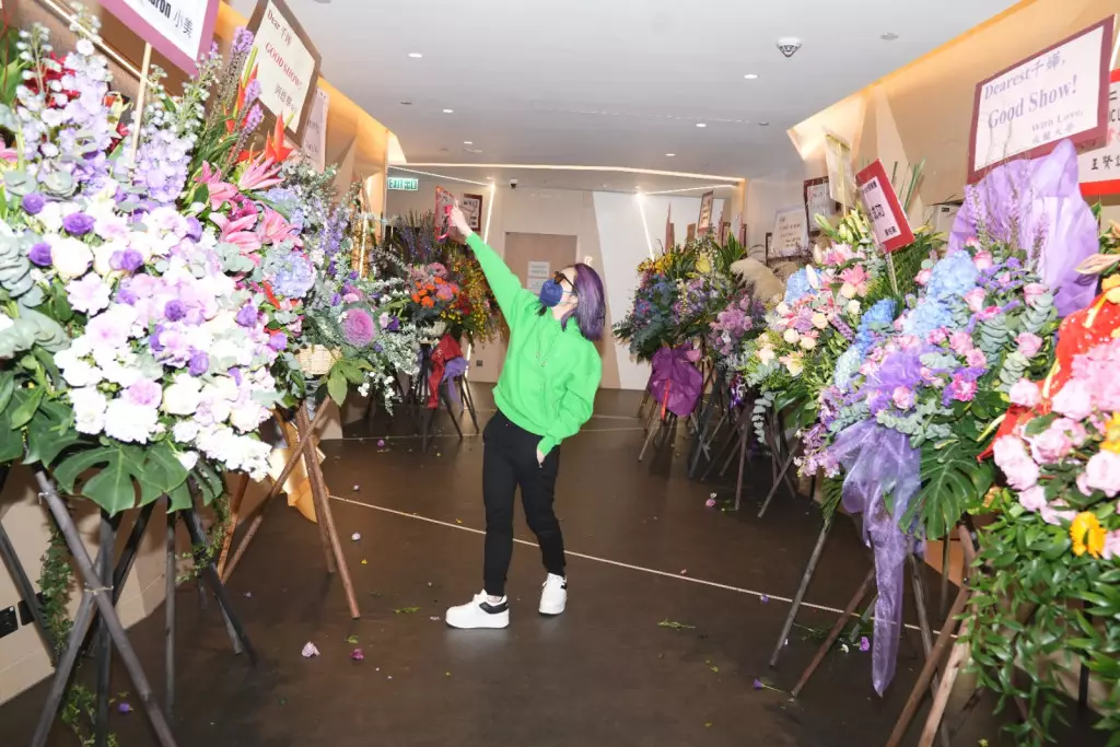 一連兩埸《楊千嬅 B minor 音樂會2022》,17日是頭埸演出,有不少親朋好友紛紛送上花籃,令後台重地變成一片花海,千嬅經過也忍不住細心欣賞,花牌分別有林建岳博士、張學友、劉德華、郭富城、小美、張智霖、袁詠儀、張敬軒、方力申、草蜢、蘇永康、成龍、陳曉東、陳小春應采兒等;至於跟千嬅合作過《聲生不息》的炎明熹(Gigi),則以「阿囡」名義送上花籃,十分有心。