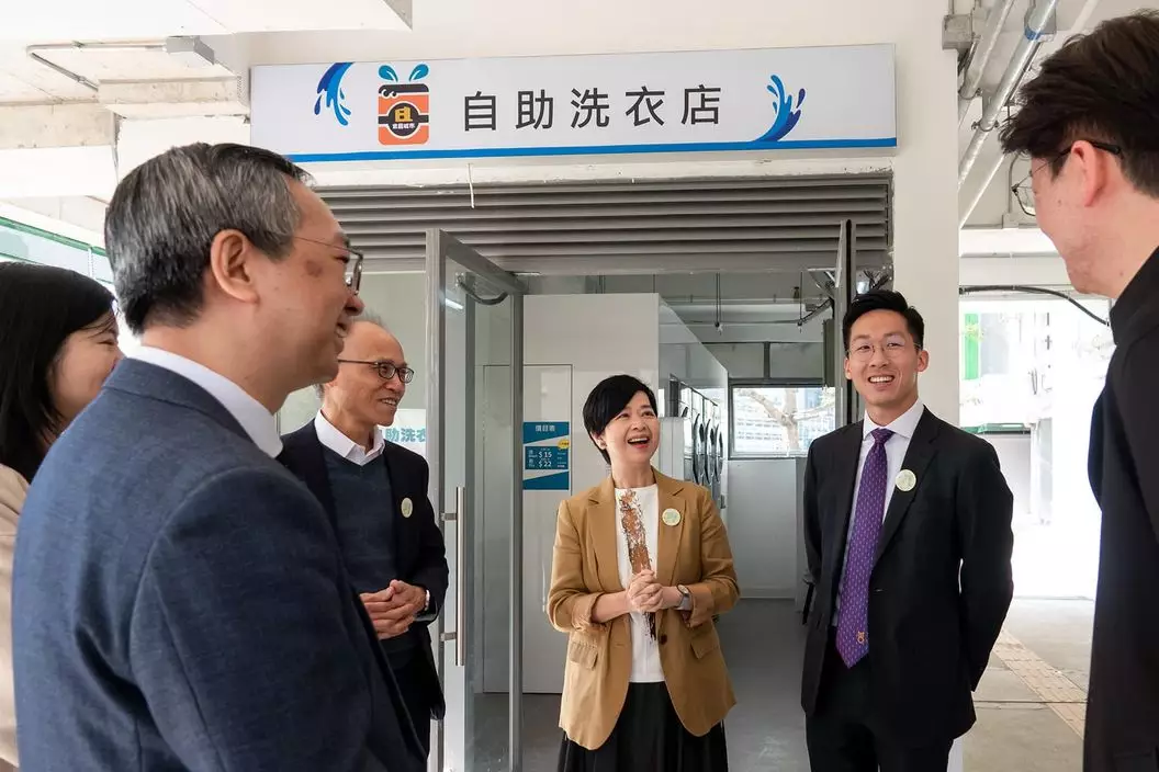 何永賢提到屯門青福里項目就在輕鐵站旁邊,一下輕鐵步行不到一分鐘已經到達項目。現場有便利店、自助洗衣店、仁愛堂的流動中醫車等設施,有不同資訊,包括小朋友轉校、大人就業、項目的社福服務等,幫助居民適應新生活。