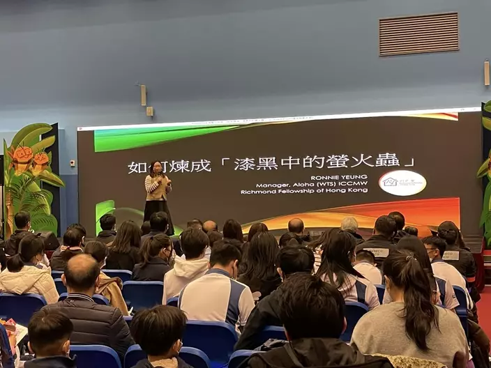 利民會更派出精神健康綜合社區中心經理楊麗君小姐為在場各位講解「如何煉成漆黑中的螢火蟲」。 講座中帶出「I Can, I Have 同 I AM 」3個重要訊息,並提醒在場各人「你是特別的」!