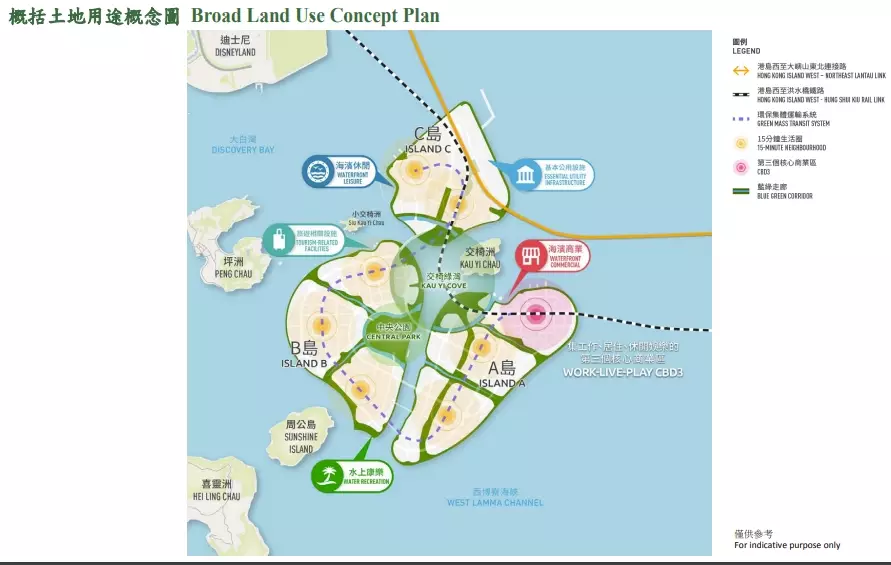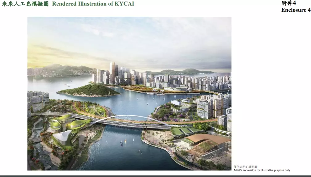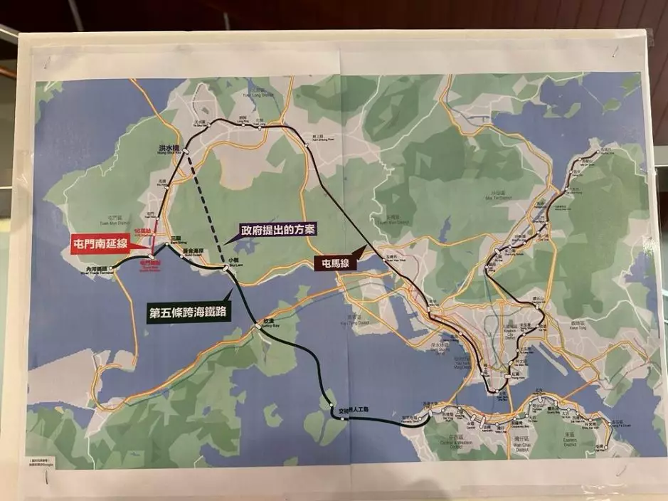 政府將中部水域人工島文件提交立法會,政府建議興建全長約30公里的鐵路,由洪水橋接駁至港島西,這與政府原先建議在屯門內河碼頭的說法不同。
