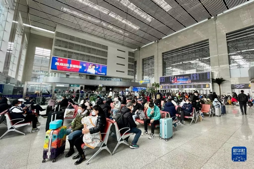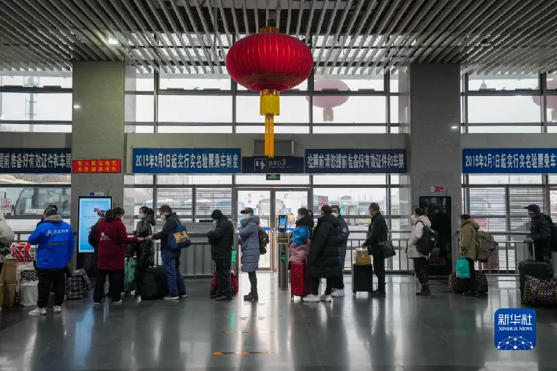 12月20日,在北京四惠長途客運站,旅客在排隊等候檢票。