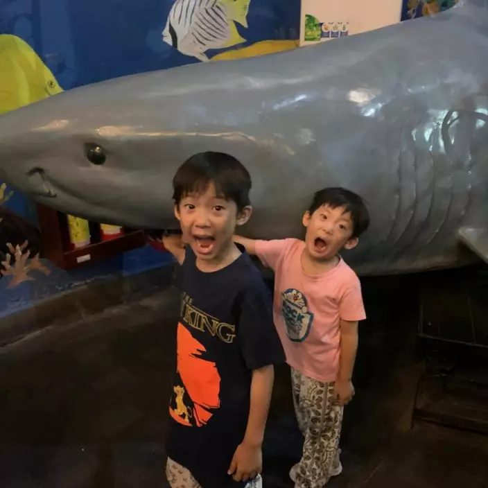 洪天明兩個囝囝洪大仁和洪竟琋。