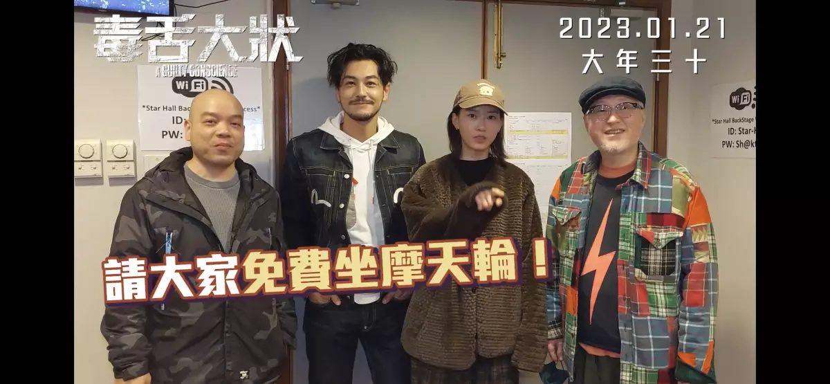 戲中一眾主創,包括導演兼編劇吳煒倫(Jack),戲中主演黃子華、謝君豪、王丹妮(Louise)、廖子妤(Fish)、何啟華(阿Dee)、楊偲泳(Renci)及栢天男(Adam),將於12月31日下午四時三十分,一齊現身香港摩天輪,並出席免費乘搭儀式,與巿民共渡歡樂,迎接2023新一年 ; 當天除夕日所有巿民皆可到香港摩天輪AIA Vitality Park免費乘坐香港摩天輪,開放時間由當天早上11時至晚上10時30分,巿民可以欣賞維港景色之餘,同時讓毒舌團隊陪大家轉走悶氣轉個好運,迎接新年旺氣。