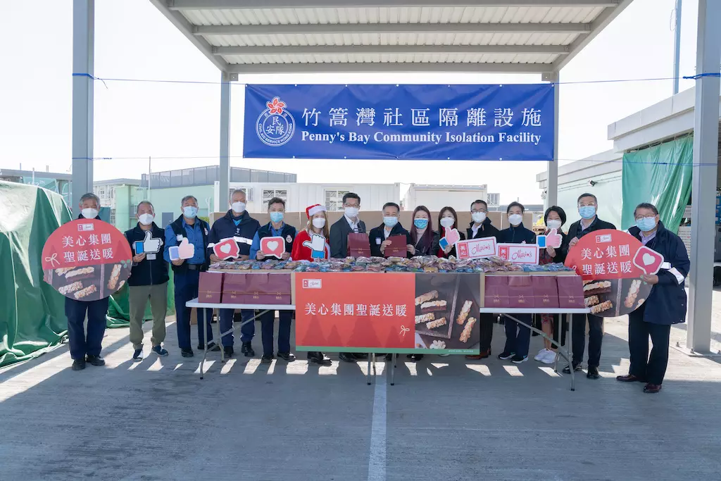 美心集團前往竹篙灣和啟德社區隔離設施,以及醫管局職員飯堂,派發聖誕小食。