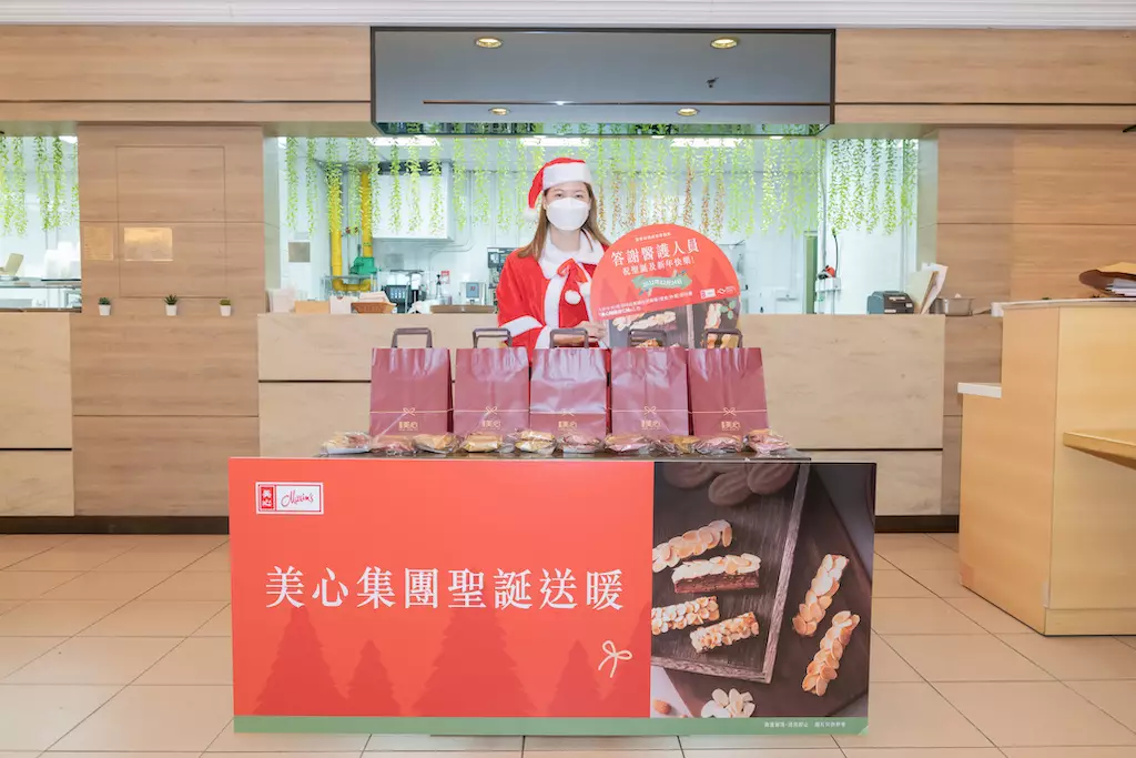 近日疫情反覆,不少市民因感染新冠肺炎而需入住社區隔離設施,適逢聖誕佳節,沒有家人親友陪伴在側,相信他們會倍感孤寂。有見及此,美心集團特別派出「聖誕天使」前往竹篙灣和啟德社區隔離設施,以及醫管局職員飯堂,派發共12,000份聖誕小食,包括杏仁條或曲奇餅等,予接受檢疫人士及醫護人員。集團亦將於聖誕及新年期間,透過「食德好」、「膳心連」及「樂餉社」,派發4,000個福袋予基層家庭及弱勢社群,為他們送上暖意及祝福。