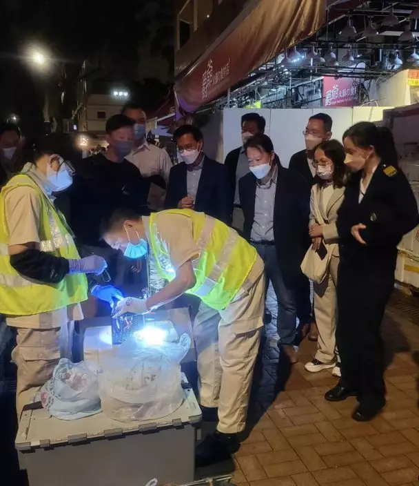 環境及生態局副局長黃淑嫻特別安排夜間防治鼠患流動隊於深夜時段捕鼠行動。(劉國勳FB圖片)