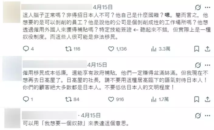 此話一出,瞬間挑戰了日本民眾的敏感神經,痛批這番言論充滿貶抑,彷彿本國籍年輕人只是外國勞力短缺時的「備胎」。