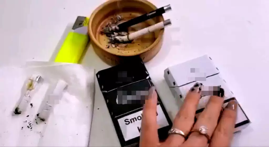 有私煙賣家在社交媒體上載宣傳短片,可見女子以纖纖玉手拿起香煙。 網上圖片