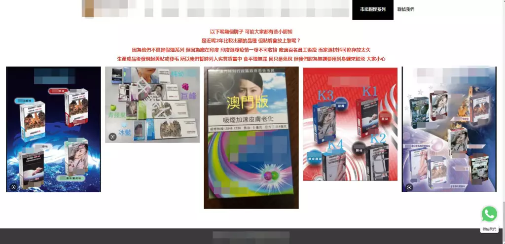 星島記者以顧客身分通過Whatsapp聯絡一名賣家,對方稱可送香煙到府上,又推介其「代理」的「白牌煙」。被問及該品牌香煙售價為何低於煙稅,對方稱是合法進口香煙,低價發售是生產商促銷手段,「當免費廣告吸引多啲人『食』,以後會加價!」