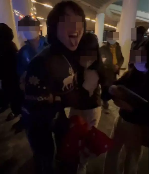 有網民則分享疑由該名涉事男子所上傳的短片。從片中可見,在尖沙嘴海旁有不少人排隊。現場有一名男子未有戴上口罩,沿路逐一與女生輕輕擁抱,期間他一邊「伸脷」,一邊晃動自己的身體。