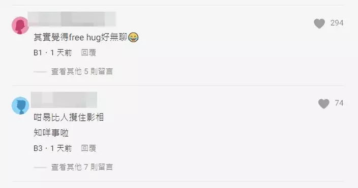 帖文亦引起涉及Free Hug的討論。網頁截圖