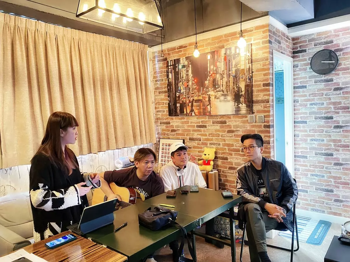 設計師DorisKath Chan與蕭正楠、伍仲衡、區永權開會。