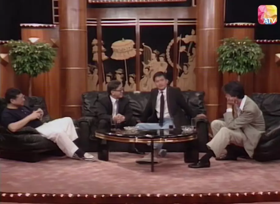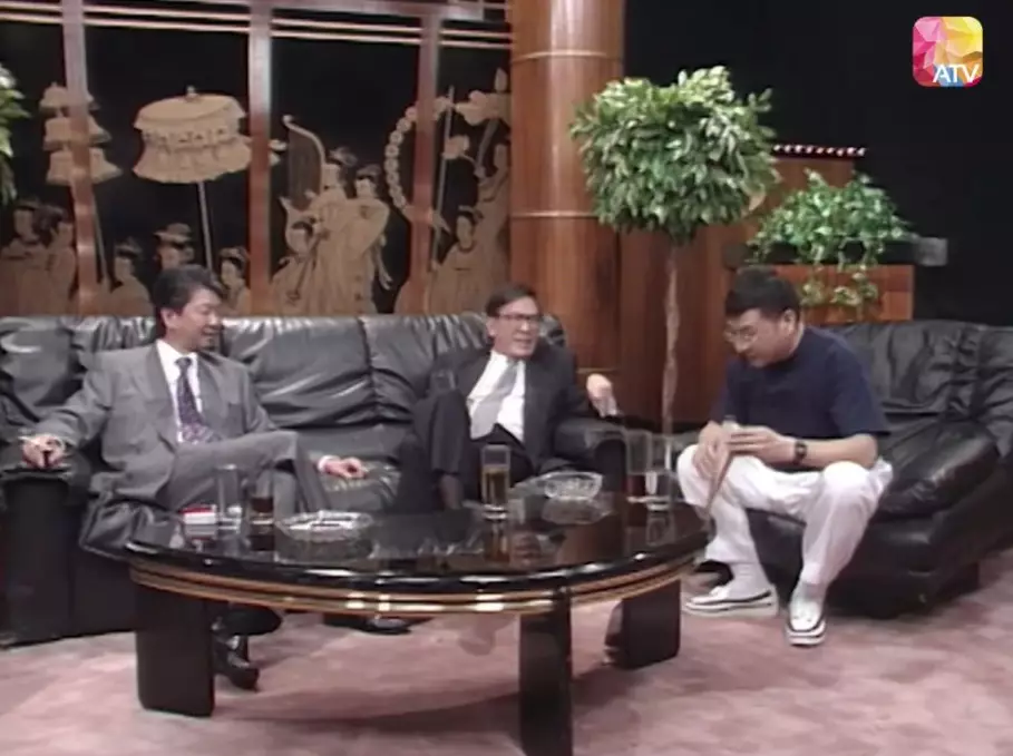(左起)蔡瀾、黃霑、倪匡在1989年至1990年主持過兩季《今夜不設訪》,訪問過張國榮、周潤發等多位巨星。