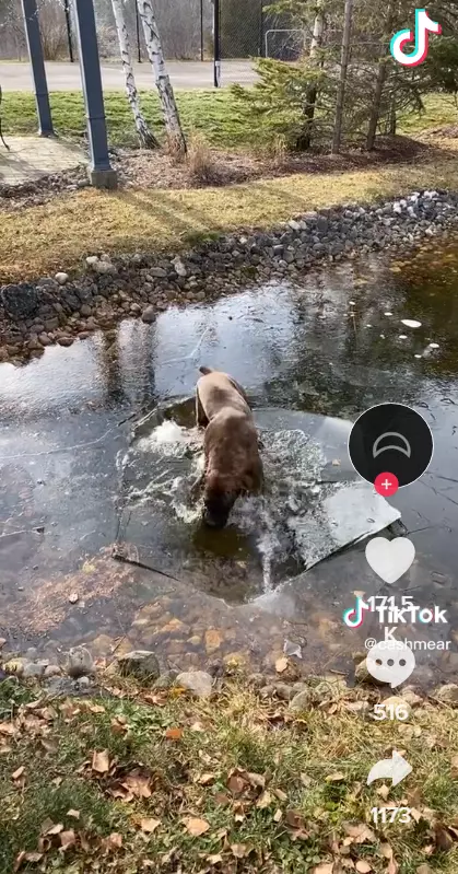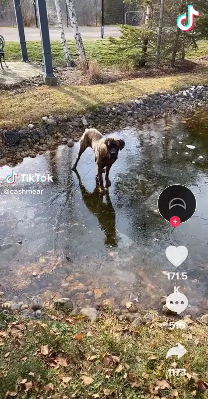 影片中可見,Cash呆站在結冰的湖面上不願動彈,即使是主人的呼喚牠也沒有聽進,但是湖面的冰層很薄,而且在Cash的重量下,已經出現一道裂痕,隨時都有裂開的可能。