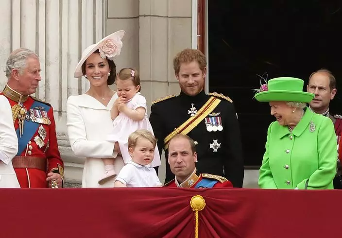 英女王伊利沙伯二世90歲壽辰慶典舉國矚目,一眾王室成員在白金漢宮露台上觀看飛行表演期間,首次現身公開場合的夏洛特小公主成為焦點。