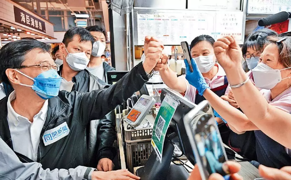 同開新篇■行政長官李家超五月選舉時落區接觸市民,盡顯親民本色。蘇正謙攝