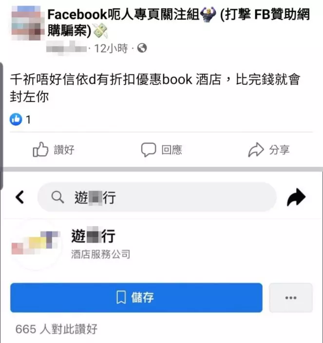 有網民留言指「遊X行」以代訂酒店有折扣優惠為名詐財。