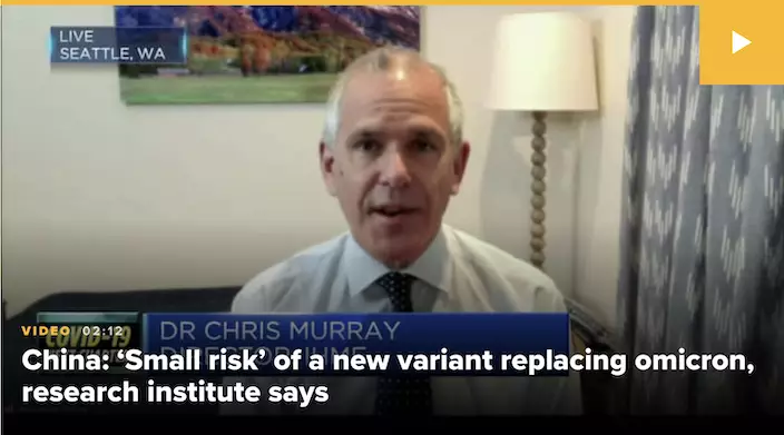 美國衛生計量與評估研究所所長認為中國出現危險的新變異株的風險「相當低」。視頻截圖