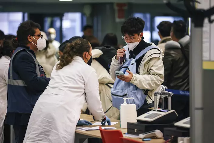 目前抵達米蘭機場的中國旅客中,對新冠陽性病例的基因組測序只發現了Omicron毒株。AP圖片
