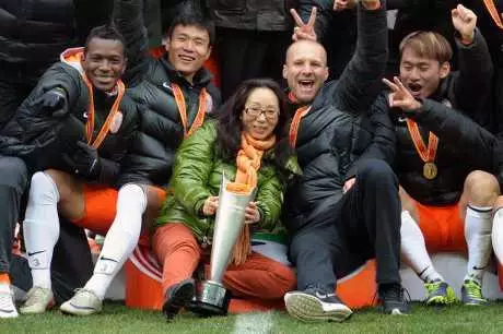 張秀麗(中)與球員 資料圖片