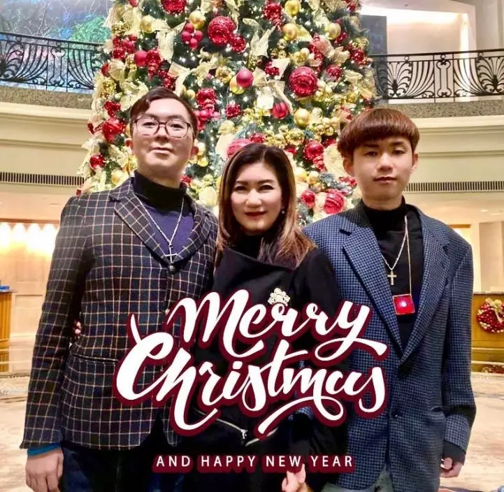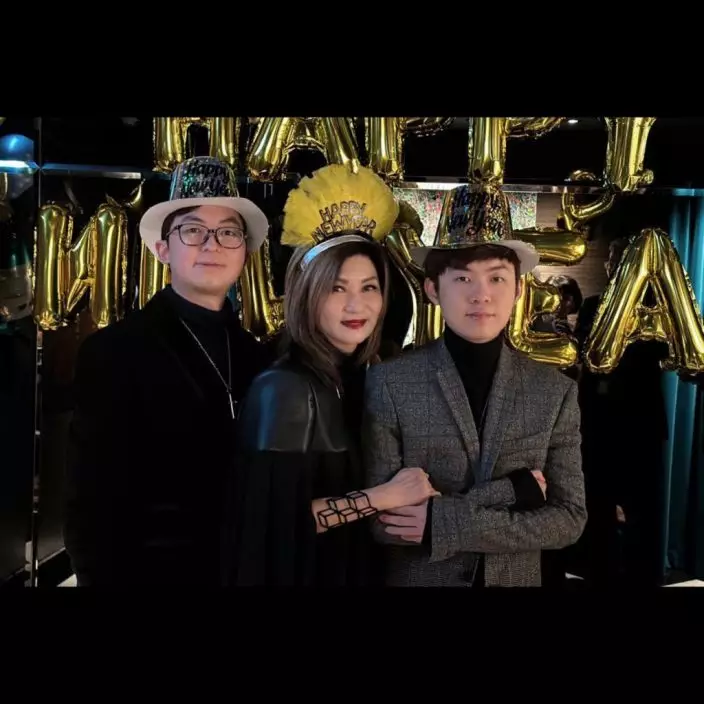 樂易玲今日貼出與囝囝Adrian和Ryan合照迎接新年,一對囝囝已經長大成人,相當高大!